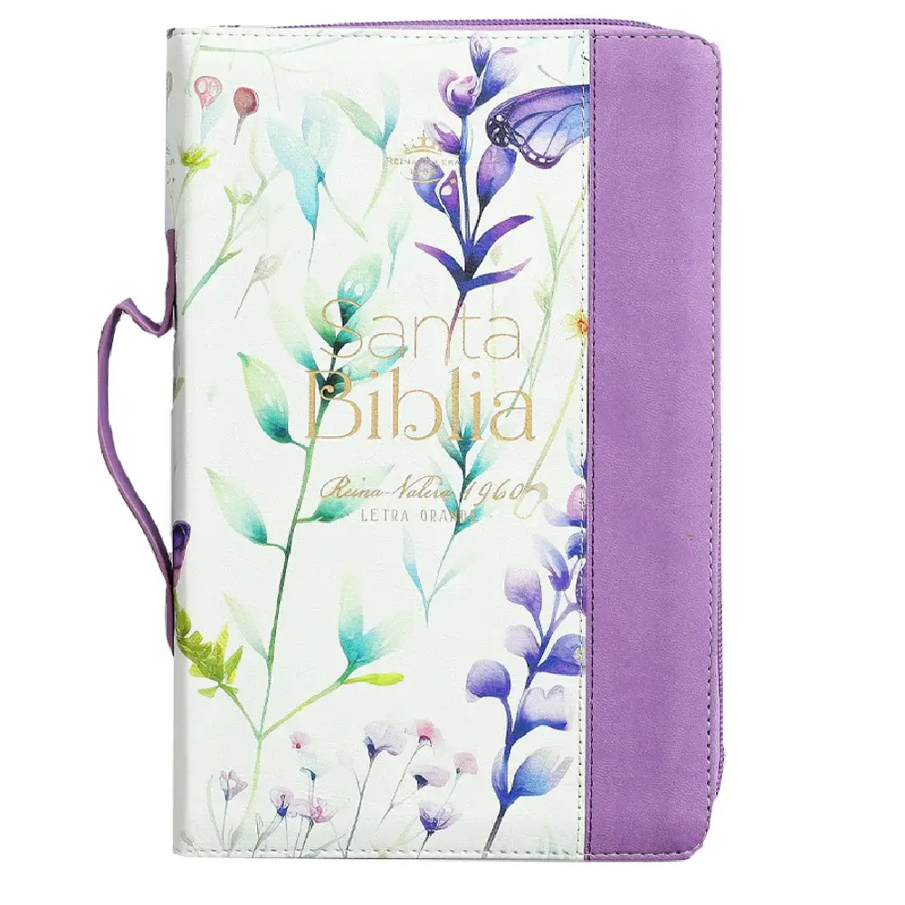 Biblia RVR 1960 letra grande con cierre – floral lila